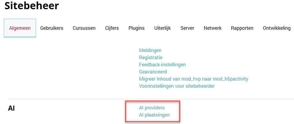 AI verschijnt dus alleen daar waar een beheerder of docent dit expliciet toestaat. Ook hier geldt dat deze mogelijkheden onderdeel zijn van Moodle™