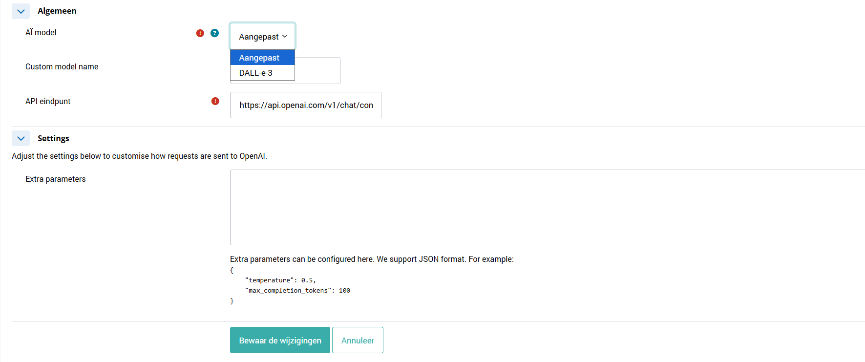 Als sitebeheerder kan je per AI-provider en per actie bepalen welke functionaliteiten zijn ingeschakeld of uitgeschakeld. Houd er rekening mee dat sommige AI-providers kosten in rekening brengen per gebruik, ook wanneer je al een betaald abonnement hebt. In de meeste gevallen is het nodig om eerst een apart API-project aan te maken. Bij bepaalde providers moet dit project vooraf worden voorzien van tegoed voordat de AI-functionaliteit daadwerkelijk gebruikt kan worden.