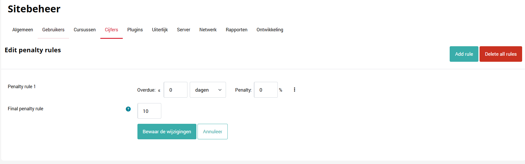 Beheerders kunnen instellen dat er cijferaftrek wordt toegepast bij te late inzendingen van opdrachten. Deze instelling geldt centraal en zorgt voor een consistente toepassing van regels rondom deadlines binnen Moodle™.