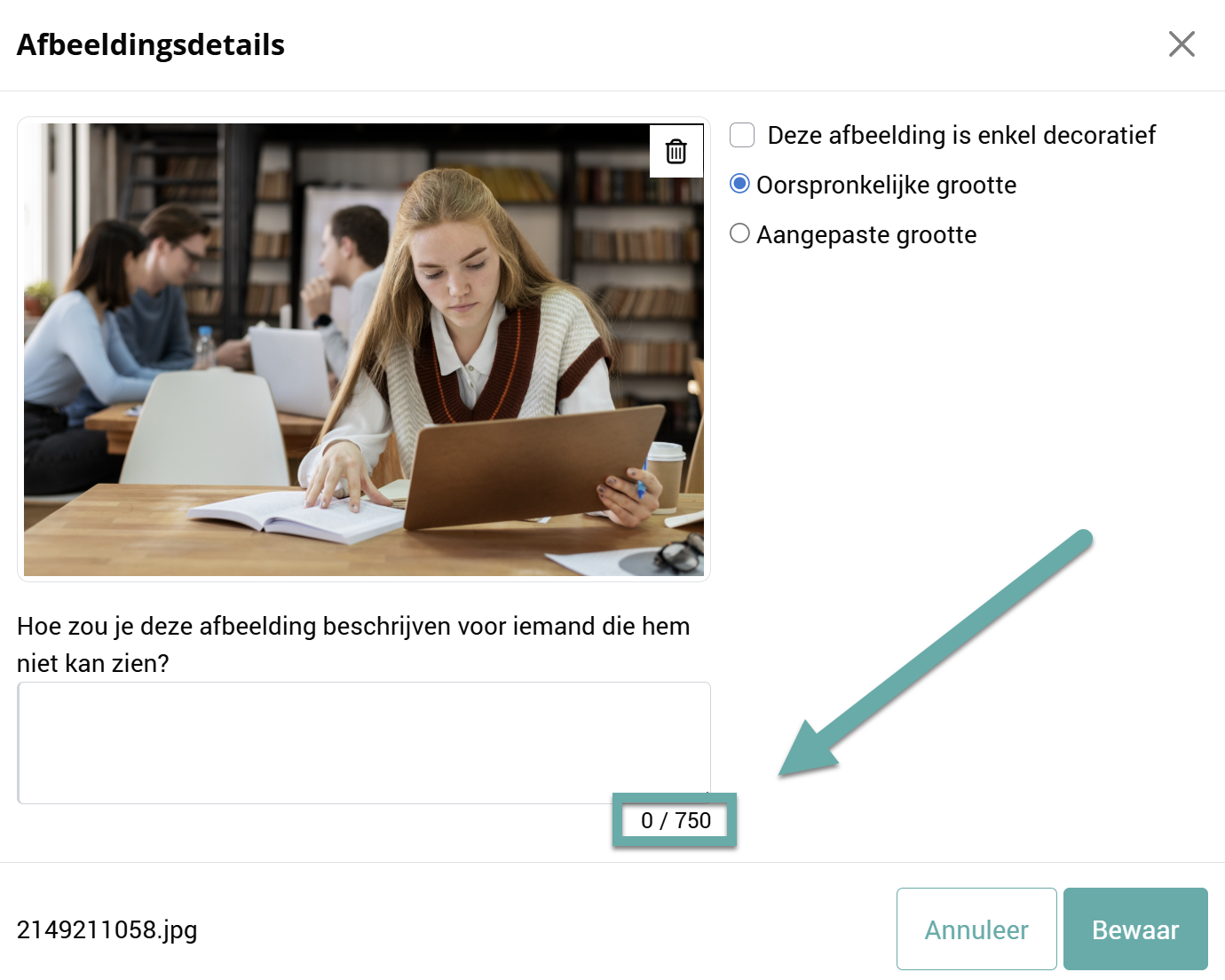 Afbeeldingsbeschrijvingen kunnen nu maximaal 750 tekens bevatten.
