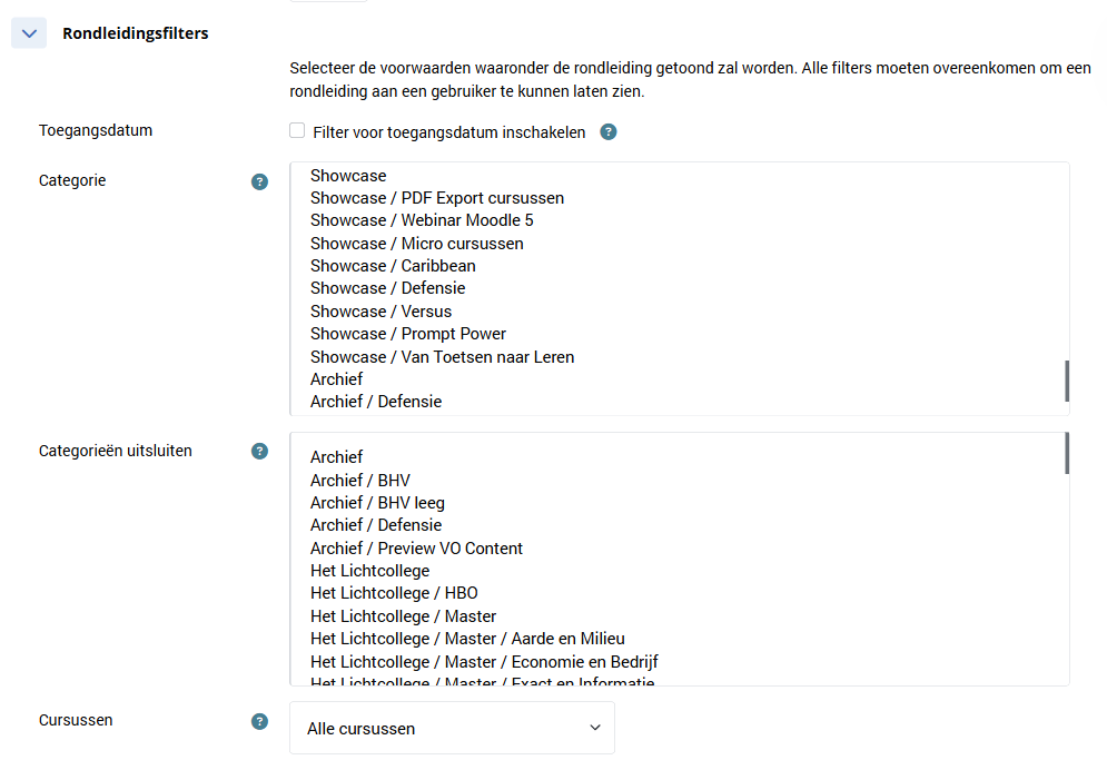 User tours kunnen nu worden uitgesloten voor specifieke cursussen of categorieën.