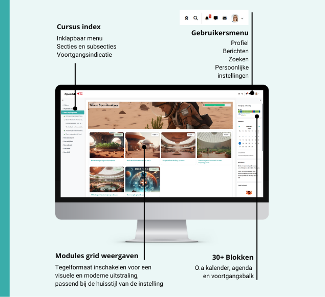 Moodle blinkt uit in functionaliteit. Maar een moderne leeromgeving vraagt ook om een professionele uitstraling en gebruikservaring.
